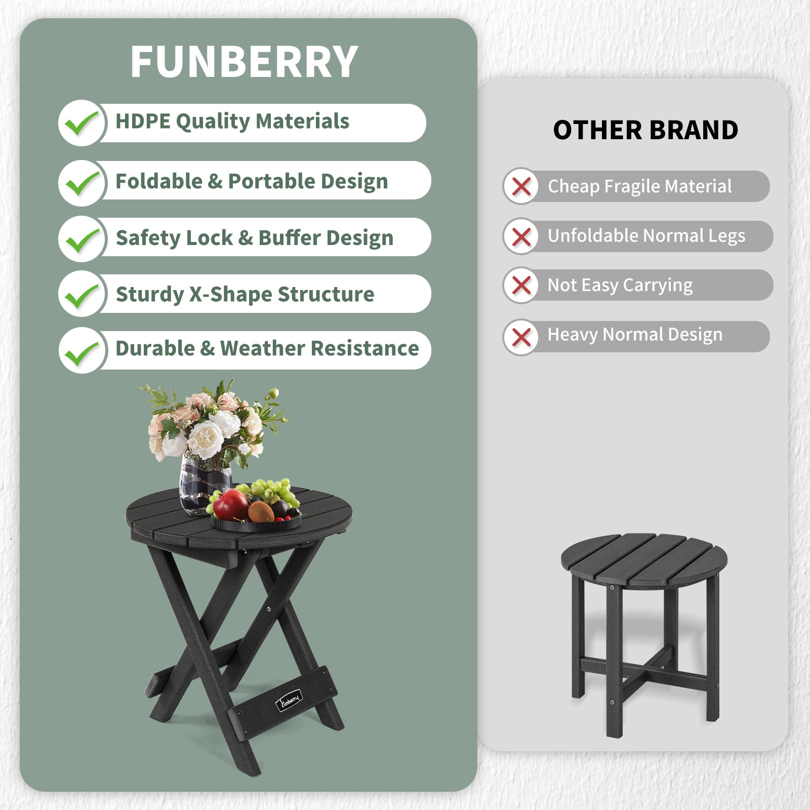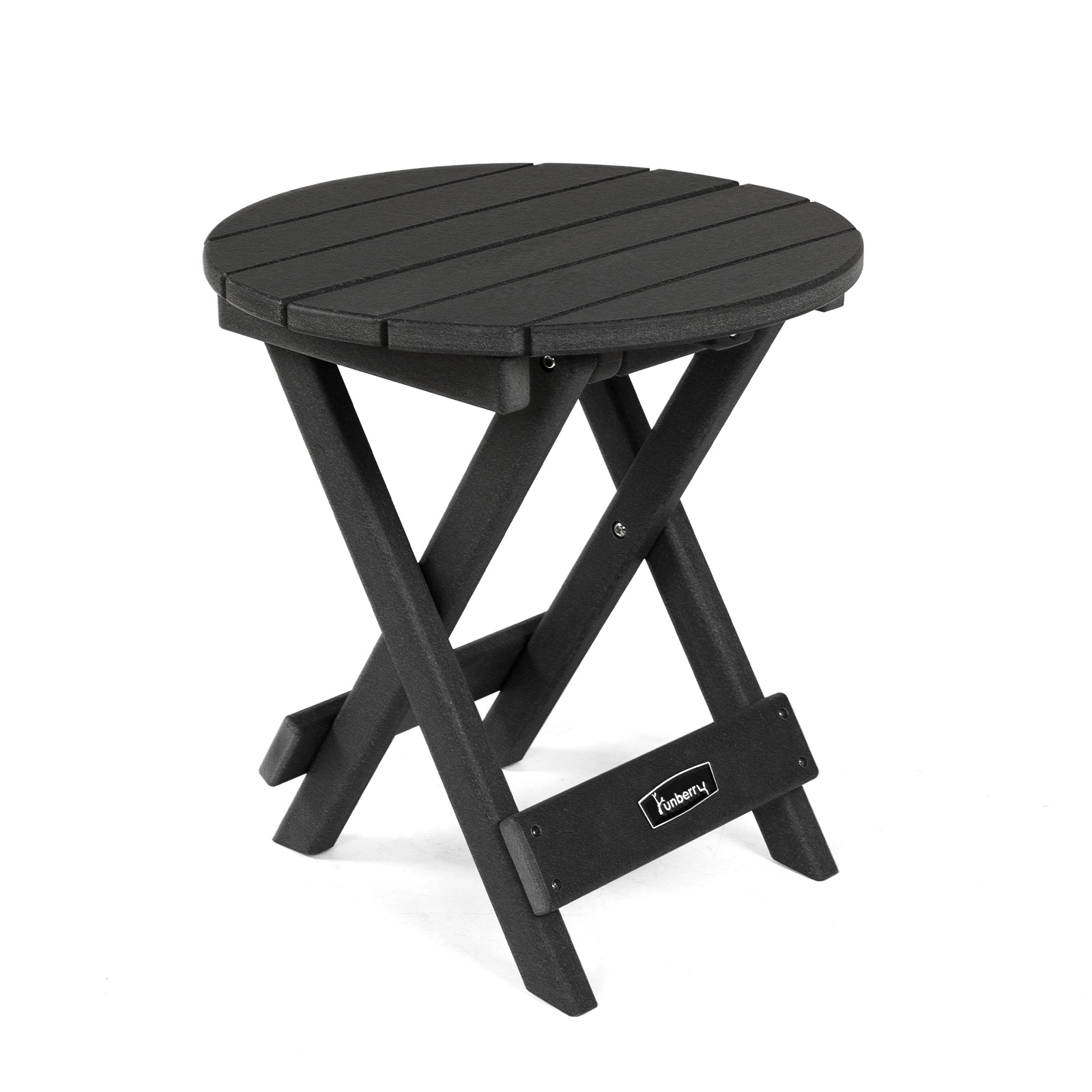 - Portable Folding Side Table: This patio side table is portable, with a quick fold-away design, you can easily carry it with you when fold it up. When unfolded, the diameter of the table top is 16.5'', and it's 17.7'' tall. This side table can hold up to 60 LBS. This patio end table is an ideal companion for Adirondack chairs, rocking chairs and chaise lounge chairs.
