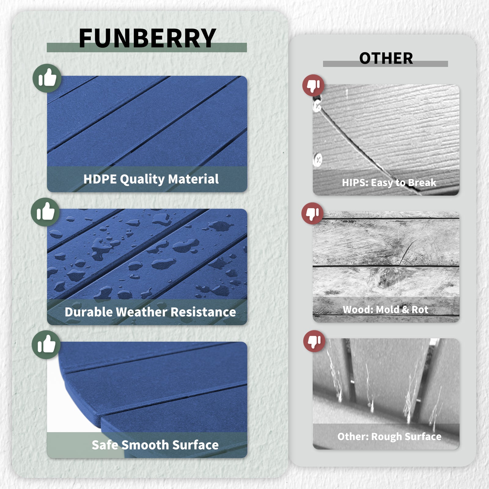 - All Weather Resistant Material: Made of HDPE (High Density Polyethylene) material, this Adirondack side table is highly durable for outdoor use. This side table is waterproof, heat resistant and UV fade resistant. No cracking, no fading or rotting comparing to other materials like wood, plastic or HIPS.